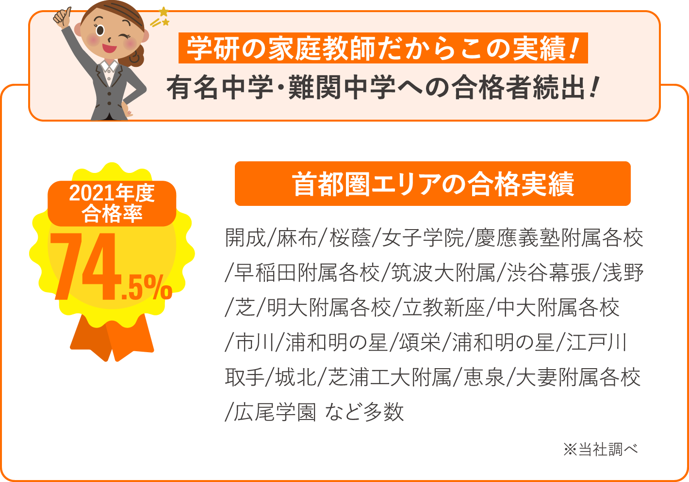 学研の家庭教師が紹介する講師は、「中学受験の経験者」または「中学受験指導の経験者」のいずれかです。